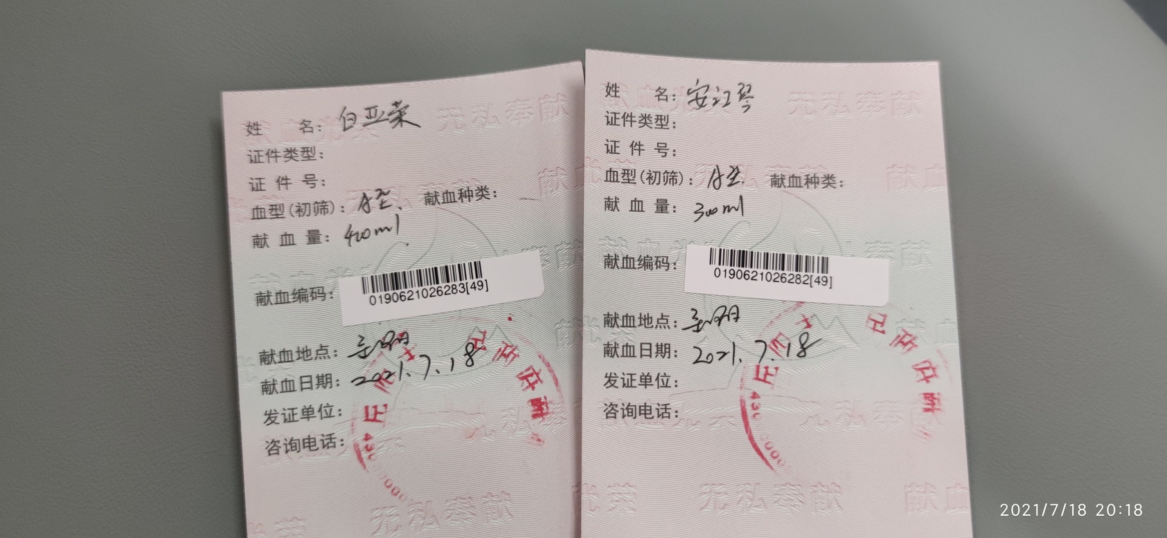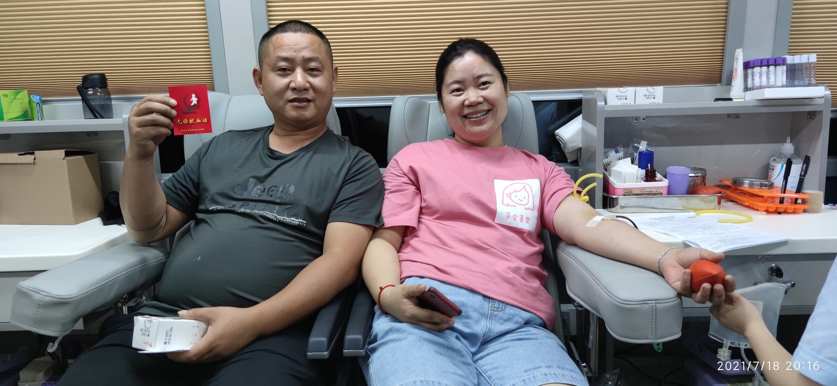 7月18日,家住云溪区路口镇的白亚荣和安江琴夫妻俩路过长炼广场时,看到停靠在路边的无偿献血车,夫妻俩双双登车要求挽袖献爱心。工作人员沟通中得知,俩人每次都是一起来献血,查看他们的历次献血记录,果然都是同天的!他们一边献血一边同工作人员亲热交谈着。白先生说:“很愿意经常参与献血,不仅对自己身体好,还能帮助到别人,挽救他人生命,多么神圣的事情!”