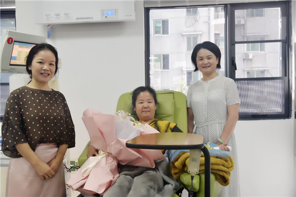 7月12日早上6点,家住职教城的李大庆骑着“小电驴”赶到了位于天元区的血站机采室。今天对李大姐来说是个特殊的日子,这是她的第一百次献血,也是她参加无偿献血的15周年纪念日。血站党总支书记、站长刘昕晨(右),副站长刘娟(左)来到现场为她献上了鲜花,表示感谢。