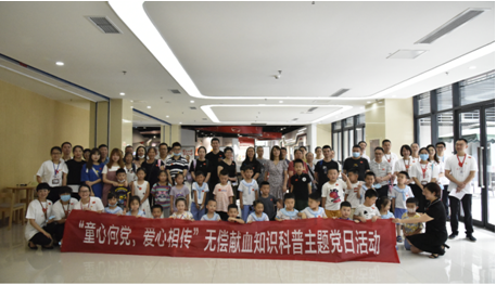 为了庆祝党的百年华诞,践行“学党史、践宗旨、办实事”,2021年7月9日,重庆市血液中心检验、业务和质管三个党支部,联合策划了 “童心向党,爱心相传”无偿献血知识科普的主题党日活动。同时活动也得到了中心宣教科、财务科和输血研究所等各科室的大力支持。来自重庆渝书香幼儿园的小朋友、老师及家长约60余人参加此次活动。