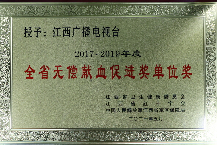 一直以来,江西广播电视台积极响应号召,动员干部职工在血液紧张时期开展无偿献血活动,有效的补充了我省血液库存,今年还荣获了2017-2019年度全省无偿献血促进奖单位奖。