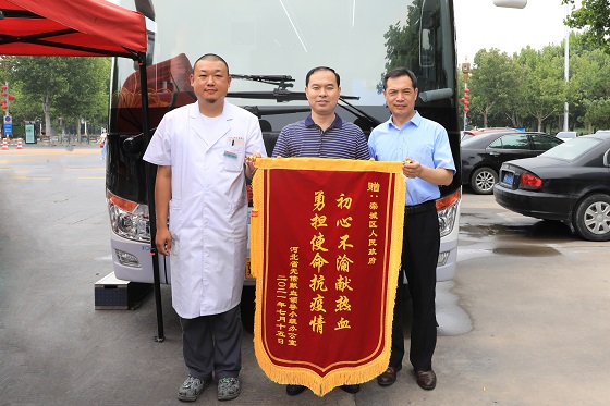 7月15日早9时,河北省血液中心献血车驶到石家庄市栾城区政府门前,早已做好准备的干部职工井然有序的走向献血车,挽起衣袖,捐献热血。虽然天气炎热,但一张张笑脸却洋溢出即将奉献爱心的开心和快乐。