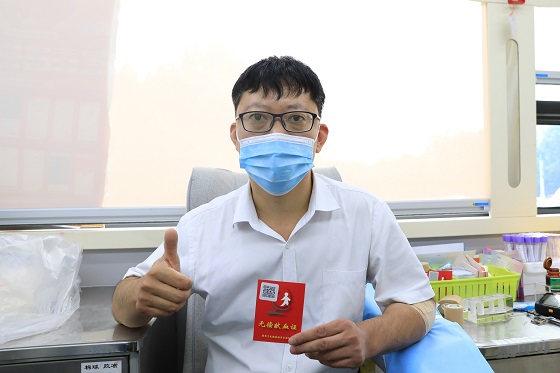 “您好,我献400毫升。”刚来到栾城区政府工作的檀晓亮在献血车上对着护士说到。原来早在上学的时候和在其他地区工作的时候,檀晓亮就有过献血经历了。“国家既然提倡无偿献血,说明对血液是有很大的需求。作为国家公职人员,应当以身作则,冲锋在前,为社会和他人尽自己的一点绵薄之力。我还会继续坚持献血,希望能够帮到更多的人。”看着他献血完毕急忙去工作的身影,默默在心中为他竖起大拇指。