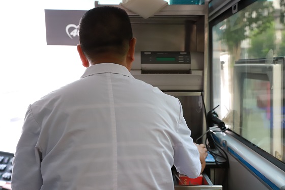 采血一线任务重、压力大,早出晚归、风雨无阻,不能按时就餐,如厕都成困难,连续工作十几个小时更是家常便饭,但他三十多年如一日执着坚守在一线。他坚信那句老话——“人在做、天在看”,无论做人还是做事都要对得起自己的良心,也深知作为一名共产党员必须有更严的标准、更大的担当、更多的奉献,况且自己所从事的还是传递大爱、救死扶伤的无偿献血公益事业。三十多年的风风雨雨,他早已将爱岗、敬业、责任、奉献这些职业理念融化于骨子里、流淌在血液中,体现在日复一日的采血一线。作为一名老血站人,他亲自陪伴了河北省血液中心三十多年的成长发展,对无偿献血事业的热爱之情有增无减。尽管已经年近花甲,依然坚守在奔波忙碌的采血一线,无怨无悔地服从工作需要和单位安排,每天和年轻的同事们一起快乐工作、不知疲倦,在传递人间大爱的同时,自己的人生价值也得到了最大体现。作为中心血液保障部年龄最大、资历最长的员工,眼看着身边不少同事陆续升迁或离开采血一线,他却心态平和甚至欣慰自己三十多年的坚守和毫不动摇的信念。虽然他有很多机会可以离开采血一线,调到工作环境舒适很多的科室,但长期在一线摸爬滚打的他,早已习惯并适应了早出晚归、紧张忙碌的工作状态,他深爱着自己的工作岗位,愿与大家同甘共苦。