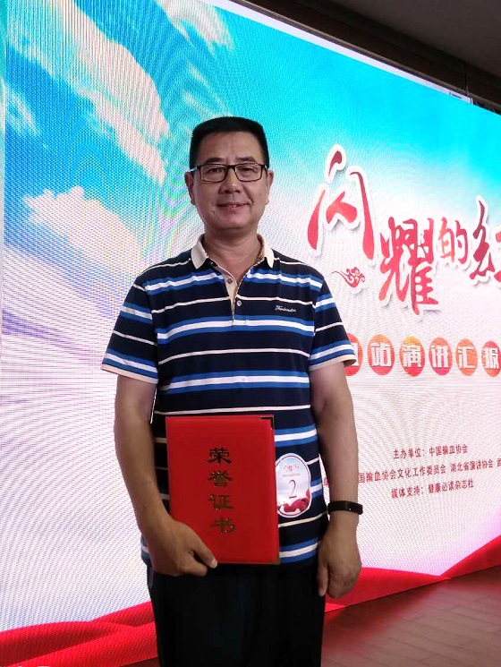 他的默默奉献从来不图回报,可人民群众的眼睛是雪亮的,他的付出都被大家看到了眼里。2019年,他代表河北省血液中心参加了由中国输血协会主办的“闪耀的红——自愿无偿献血优秀事迹全国巡讲活动”;2020年被省卫健委评为2018—2019年度委直机关优秀共产党员......这些都是组织和群众对他工作的认可,他却说这是莫大的荣誉。