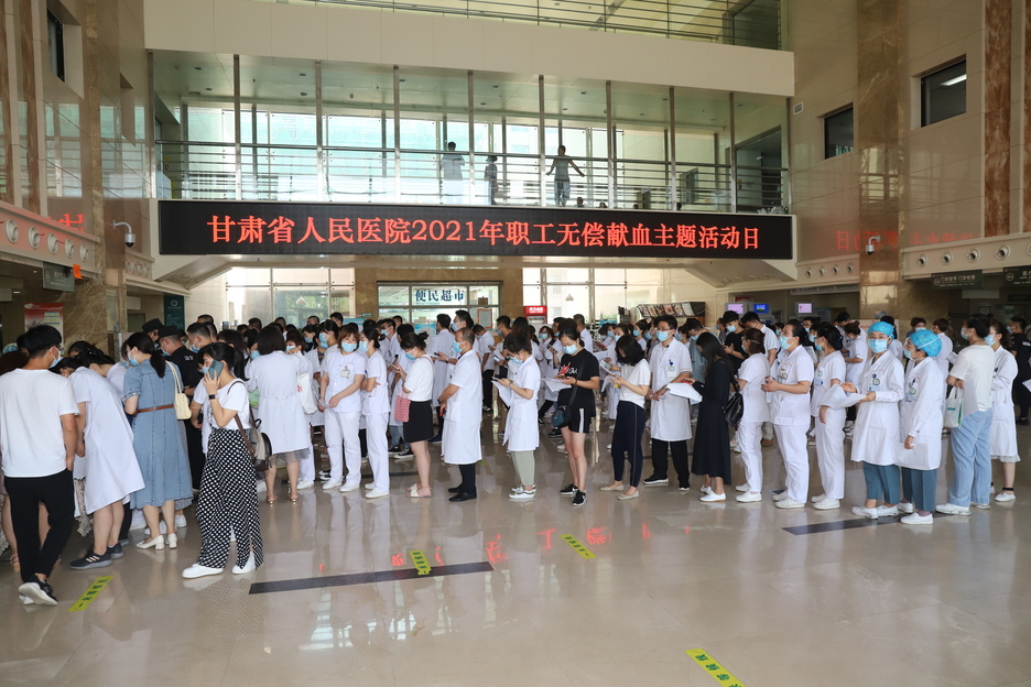 7月23日,甘肃省人民医院联合甘肃省红十字血液中心在省人民医院院内开展“敬佑生命 救死扶伤 甘于奉献 大爱无疆”主题无偿献血活动。