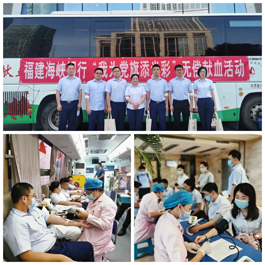 为弘扬志愿奉献精神,引导广大党员干部职工以实际行动践行“我为群众办实事”,7月12日上午,福建海峡银行联合福建省血液中心开展“我为党旗添光彩”无偿献血活动,共35名员工成功献血,总献血量1.1万余毫升。
