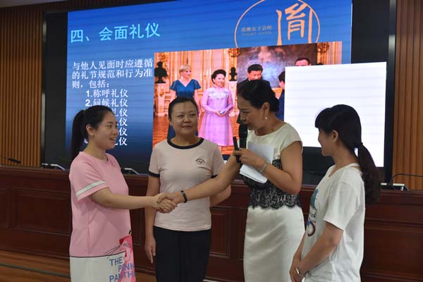 礼仪课上,高级礼仪培训师李红胤采取“理论+模拟实操”的方式,对接待礼仪、乘车礼仪、用餐礼仪及会面礼仪进行详细的讲解,并通过设定不同场景的实操模拟,加深了员工对各种礼仪的掌握和运用。