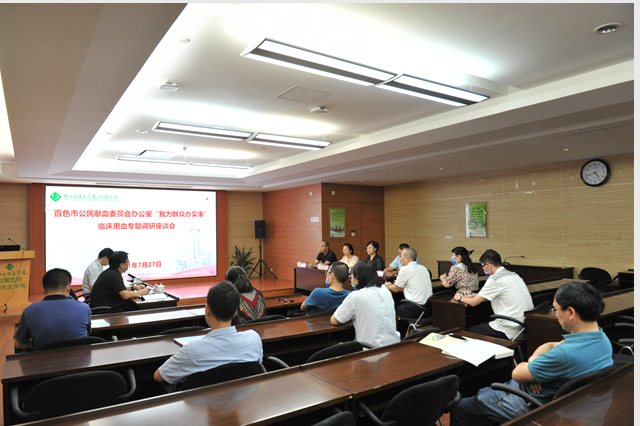 7月27日下午,市公民献血委员会办公室副主任、市中心血站站长梁朦尹带领副站长覃宁以及质量管理科、供血科等职能科室负责人一行4人,先后来到市人民医院和右江民族医学院附属医院开展“我为群众办实事”临床用血专题调研,两家用血医疗机构办公室、医务部、输血科及用血重点科室负责同志参加。