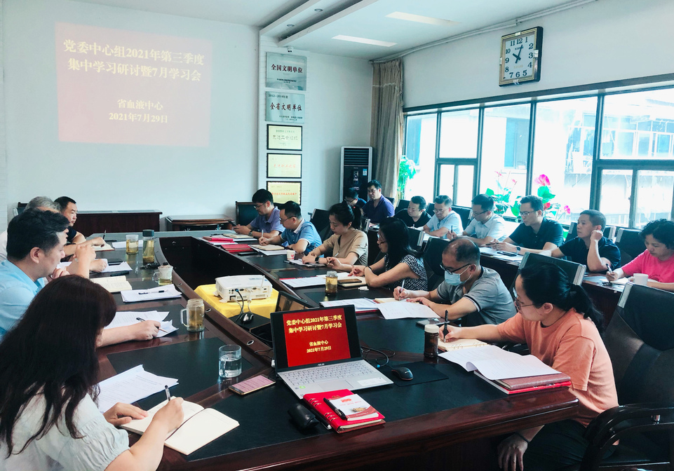 7月29日,省血液中心举行党委中心组第三季度集中学习研讨暨7月学习会,围绕习近平总书记在庆祝中国共产党成立100周年大会上的重要讲话精神进行专题学习和交流研讨。中心党委书记朱思刚主持会议并专题宣讲习近平总书记“七一”重要讲话精神。