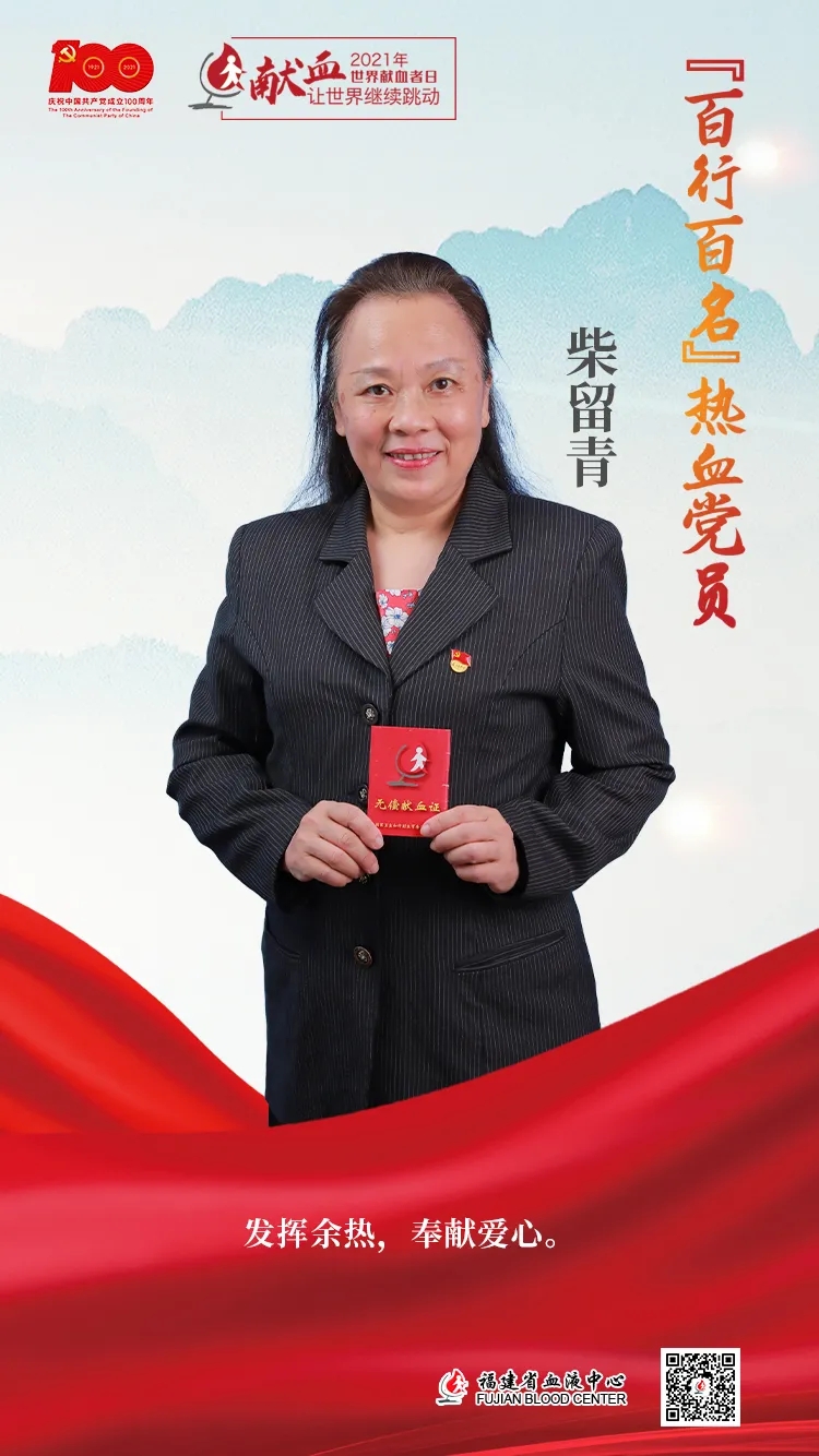 多年来,柴留青用自己的献血经历现身说法宣传无偿献血。她的热情服务和耐心细致的引导,得到了许多献血者的肯定,也获得了2016年福建省血液中心献血服务志愿者之家颁发的“招募大使”称号,以及2018-2019年度全国无偿献血志愿服务奖四星奖。