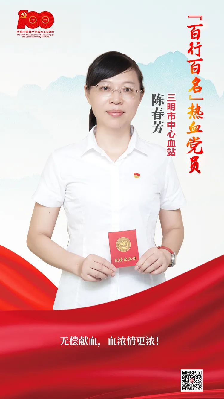 作为一名血站工作人员,陈春芳始终牢记党的全心全意为人民服务的宗旨,处处发挥党员先锋模范作用。她认为无偿献血不仅有益身心健康,还可以为临床用血提供保障,也是人与人之间爱心交流、相互扶助的文明体现。对于身边朋友对无偿献血的误解,她都会用医学知识和亲身经历向他们科普无偿献血知识,宣传无偿献血的重要意义,带动更多的人加入到无偿献血的队伍中。