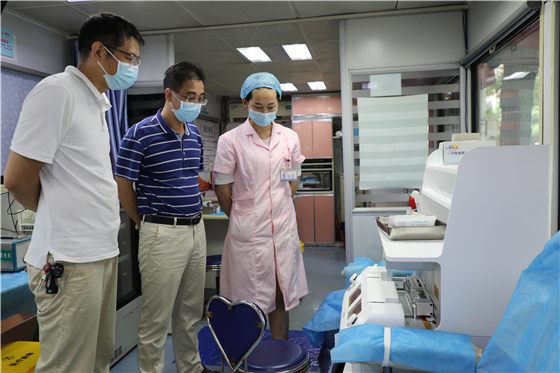 郴州市中心血站站长李孟祥督查街头献血点设施设备使用情况