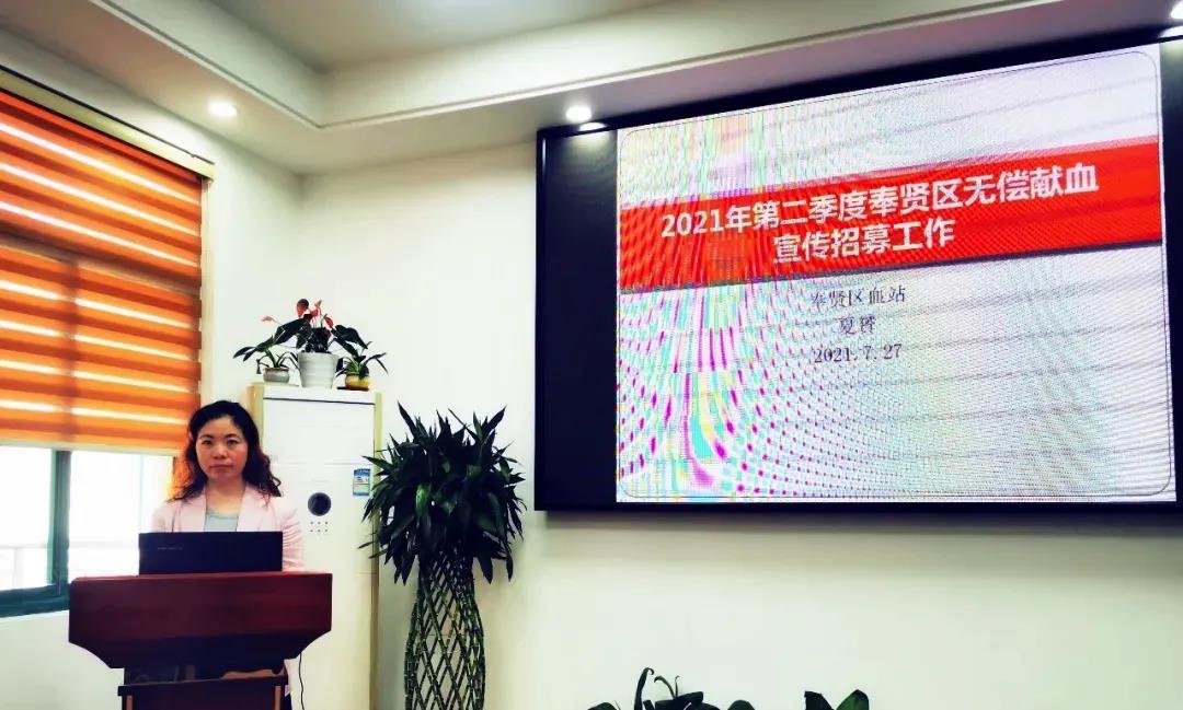 7月28日下午,奉贤区召开2021年第二季度无偿献血工作例会,来自镇、街道、开发区及发展集团的45名团体无偿献血组织者参加,会议以“安全招募,保证用血安全”为主题。