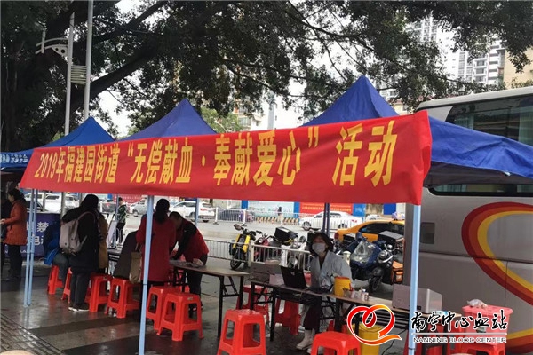2月23日上午,南宁中心血站联合江南区福建园街道办开展无偿献血活动。