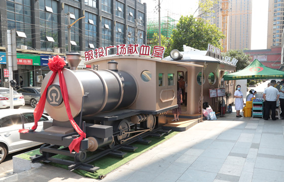 “没想到在街头能看到如此气派的火车头献血屋!”7月30日上午,武汉血液中心服投广场爱心献血屋正式启动。其别具匠心的复古火车头造型,给路过的许多市民带来惊喜。据悉,这是武汉首个火车头造型的献血屋。它是继汉口火车站“动车”造型献血屋、光谷世界城“360度全景玻璃房”造型献血屋后的又一设计独特、象征着城市文明的新地标。
