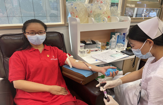 “无偿献血爱心个人”盛爱民正在献血(肖莉娇摄)