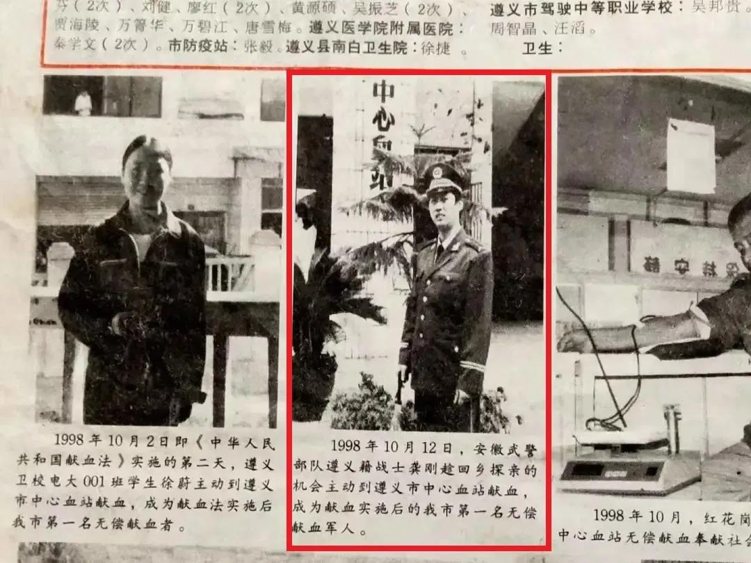 市中心血站工作人员对龚刚这个名字印象深刻:“因为他是1998年《献血法》实施后的我市第一个无偿献血军人,当时他一身军装,十分精神,而且走过来二话不说献了400毫升血。随后,遵义市献血办公室、遵义市中心血站还专门给龚刚的部队寄去了一封感谢信。