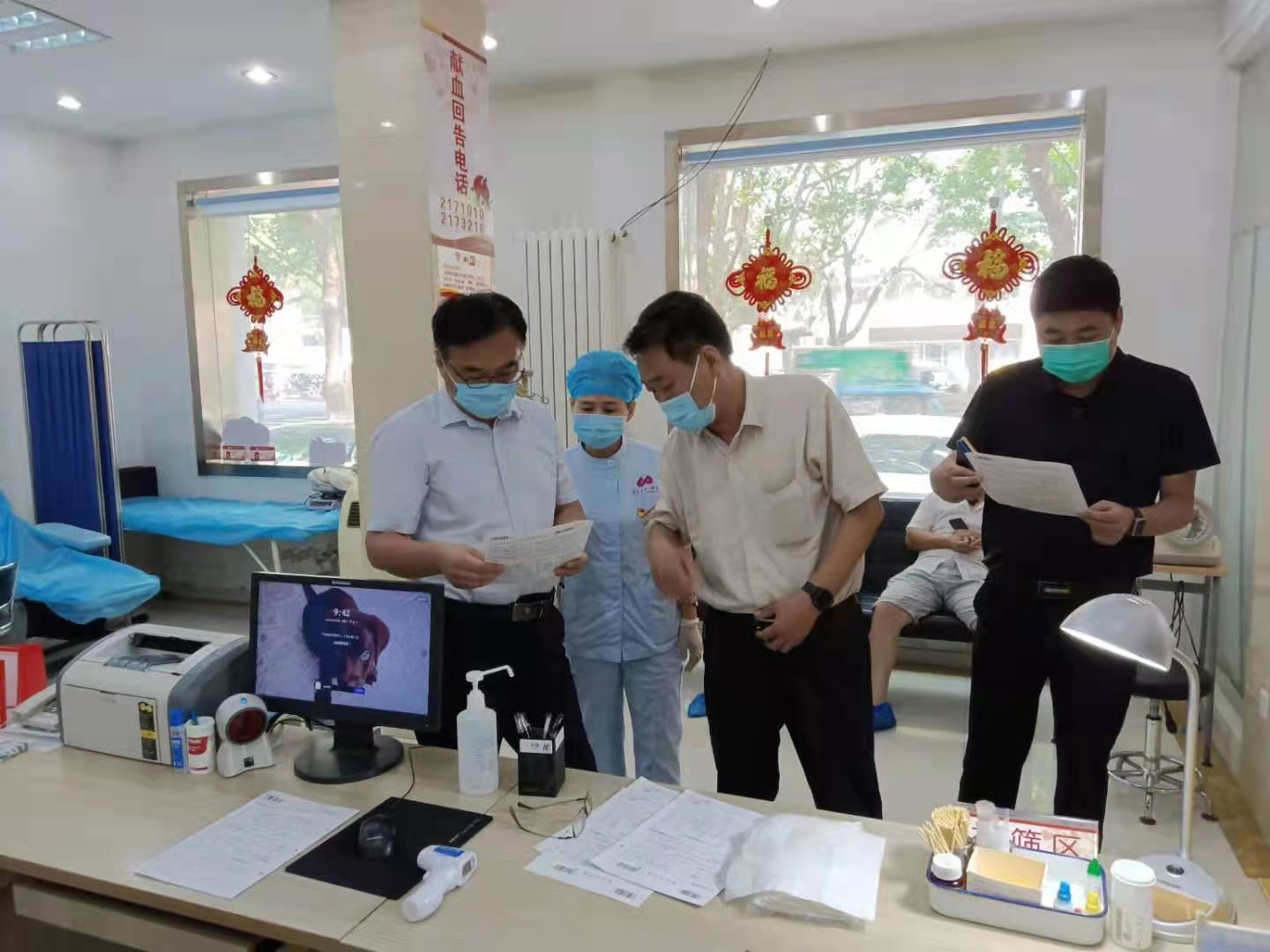 为深入贯彻落实中央、省、市疫情防控工作的部署要求,积极做好疫情防控工作。2021年8月3日上午,济宁市中心血站站党总支书记、站长孔凡生,副站长宋建光、王志效,体采科科长高磊,一行4人到红星路采血屋督导疫情防控工作。