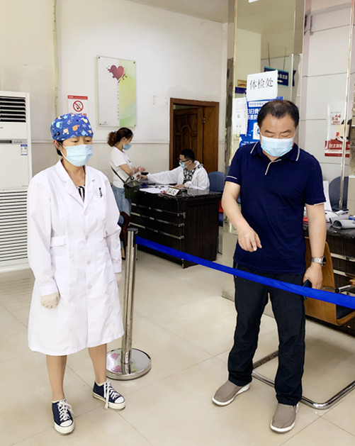 崔欣一行来到中心大门出入口、献血接待大厅、血液采集区、供血科及偿还血办理处等窗口科室和重点场所,对疫情防控工作落实情况进行实地巡查。