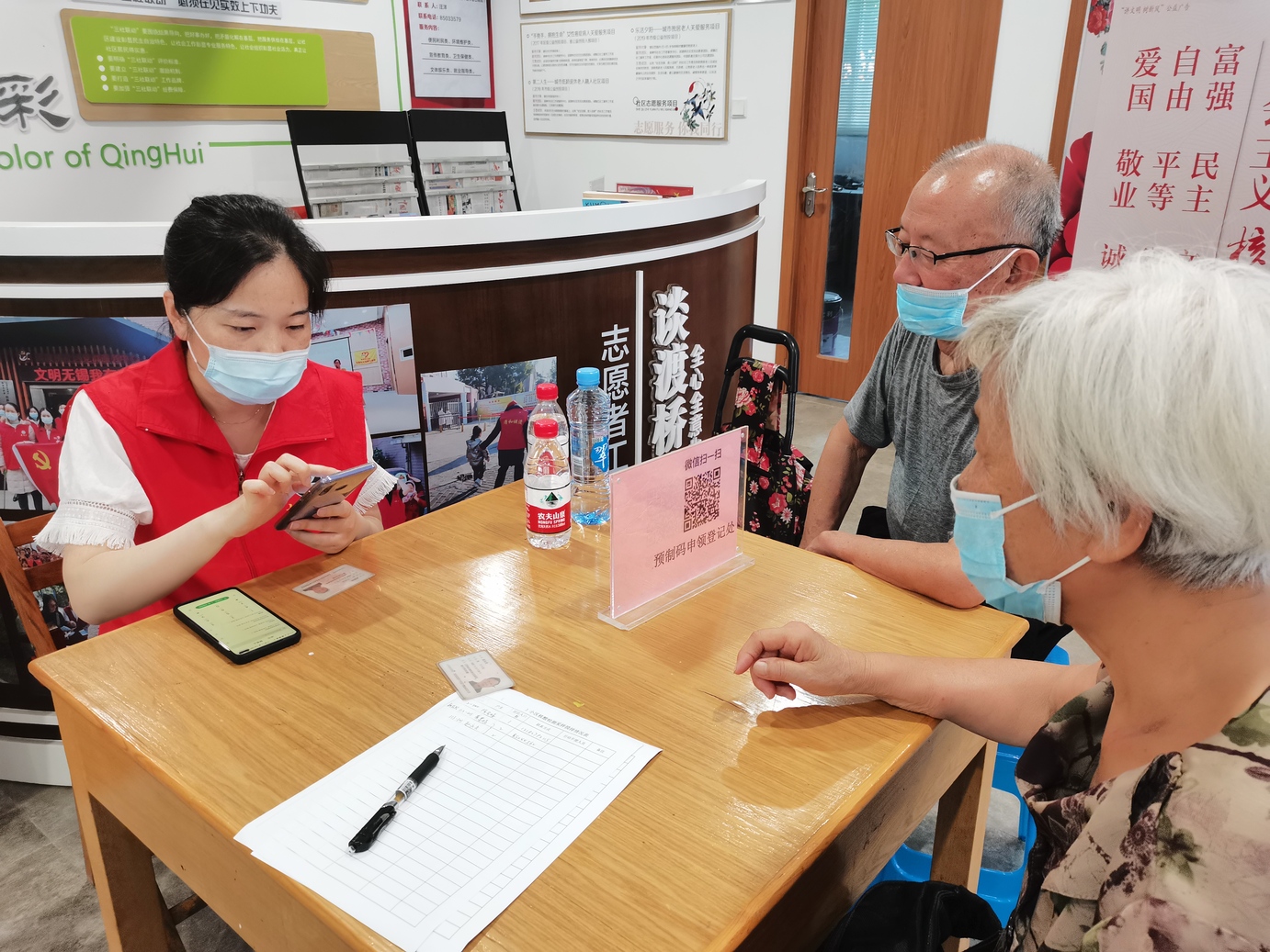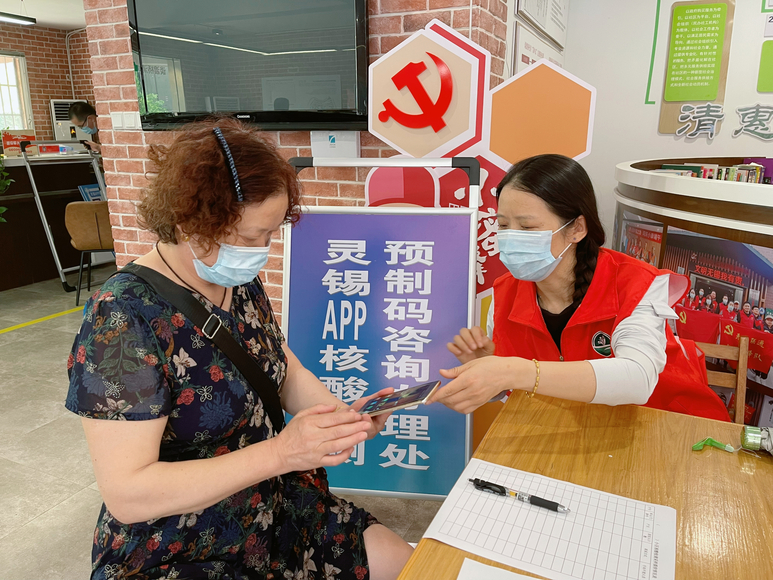 到达谈渡桥社区服务中心后,志愿者们积极配合社区工作人员,迅速熟悉工作流程,帮助小区中老年居民下载灵锡APP,注册用户,生成核酸检测预制码。同时引导社区居民有序排队,耐心解答群众提出的各种问题,确保防疫工作的平稳顺利、安全有序。