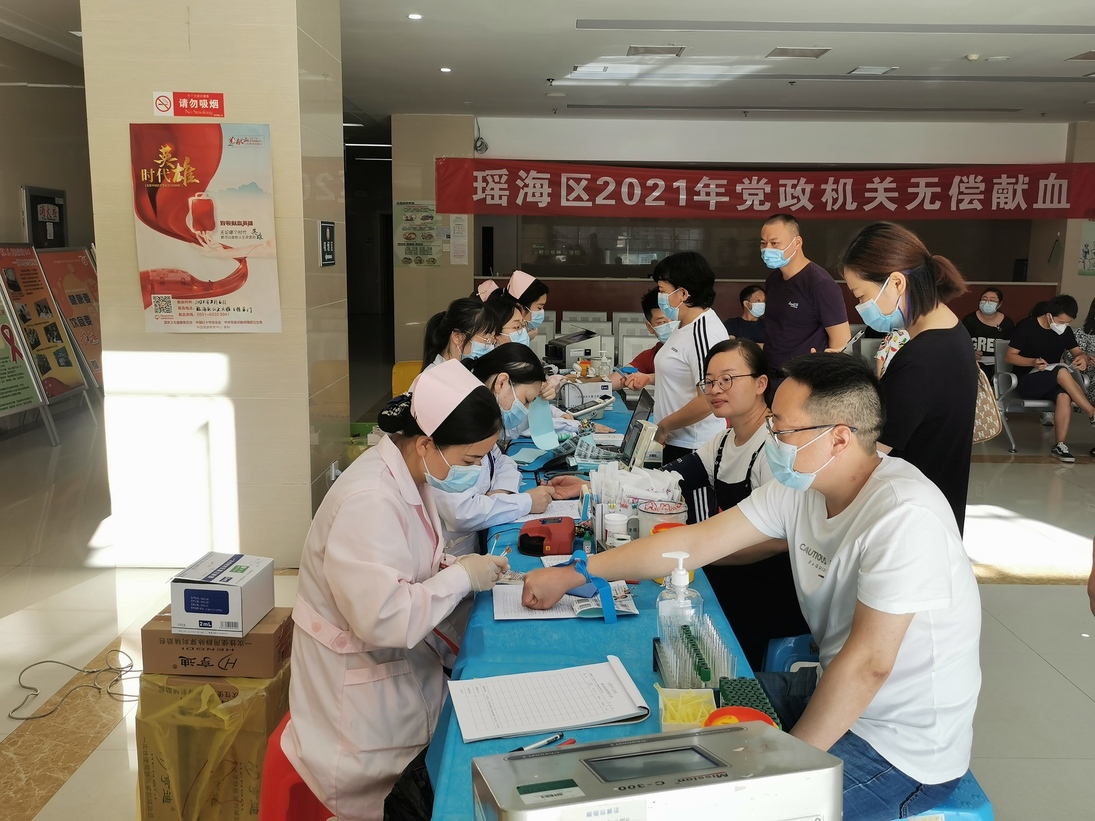 当前,合肥防控形势依然严峻,为更好地抗击新冠肺炎疫情,保障临床用血需求。瑶海区积极组织党政机关人员参与无偿献血活动。