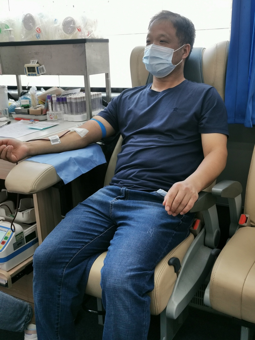 在献血的队伍中,既有领导干部,又有普通党员,还有来自社区街道的卫生服务工作人员,他们用实际行动诠释了“点滴热血、无限爱心”的大爱情怀。大家严格按照疫情防控要求,在一楼大厅间隔排队,完成填表和检测后安全有序进入献血车献血。