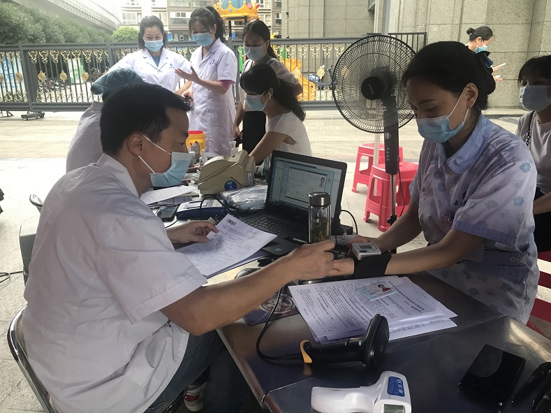 早上7:30,随着采血车停靠在医院门前,该院的医务人员已在那里早早排队等候。活动开始,在血站工作人员指导下,他们井然有序的测体温、手消毒、查验健康码、填写《无偿献血登记体检表》、健康征询、体检、快速检测,符合捐献条件的陆续走上采血车挽袖献血。在采血现场,医务人员纷纷表示:“作为医务工作者,深知无偿献血对于临床用血患者的重要性,希望通过无偿献血的方式,将希望传递给更多的人,让更多人加入到无偿献血的队伍中来,为保障医院临床用血作出贡献。”