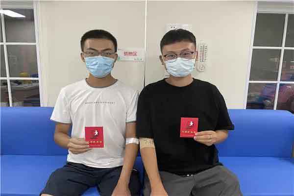刚参加工作的小伙张新钰(右)和同事李延灼(左)撸袖献血助力战疫。“读书时,就在老家献过血,现在走上工作岗位,更加深刻体会到献血是一种责任。”张新钰说:“疫情当前,我虽没有在抗击疫情的第一线战斗,但能献血帮助患者康复,也是很开心的。”