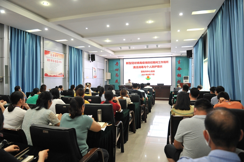 为加强落实采供血疫情防控工作,进一步强化全市采供血重点场所的清洁消毒及个人防护,8月11日下午,百色市中心血站在站内多媒体教室集中开展《关于新型冠状病毒疫情防控期间工作场所的清洁消毒与个人防护》培训。