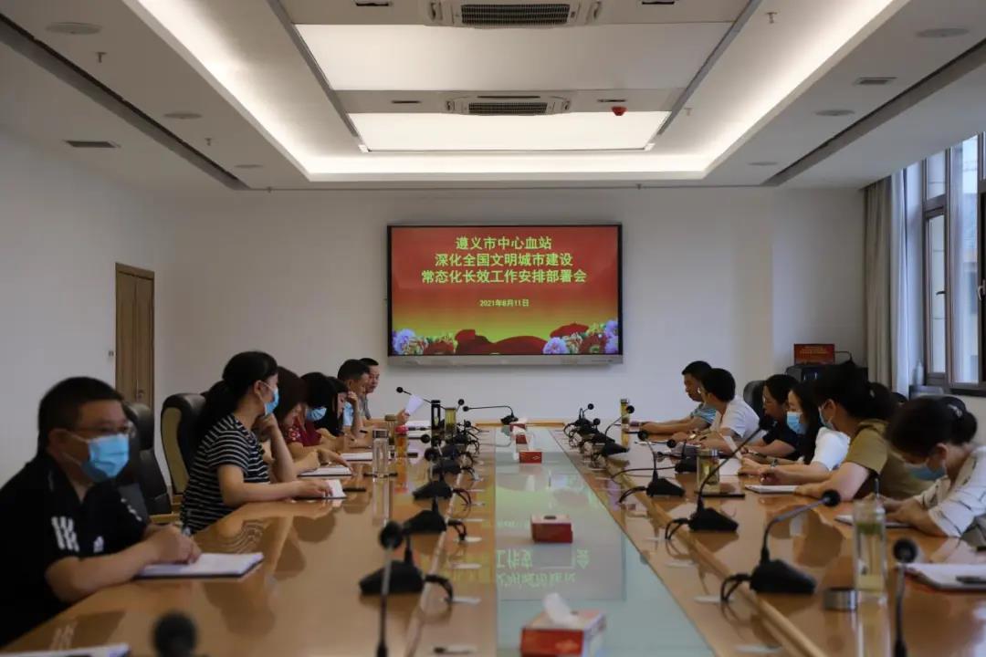 为切实巩固全国文明城市创建成果,保质保量完成好2021年全国文明城市测评工作。2021年8月11日,遵义市中心血站召开深化全国文明城市建设工作安排部署会,站领导班子成员和各科室负责人参加会议。副站长张承伟主持会议并讲话。