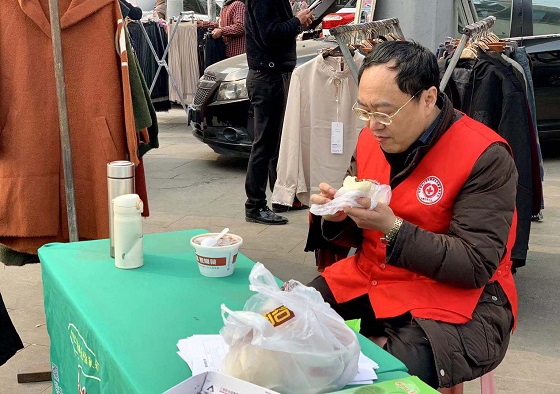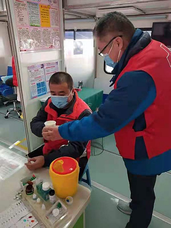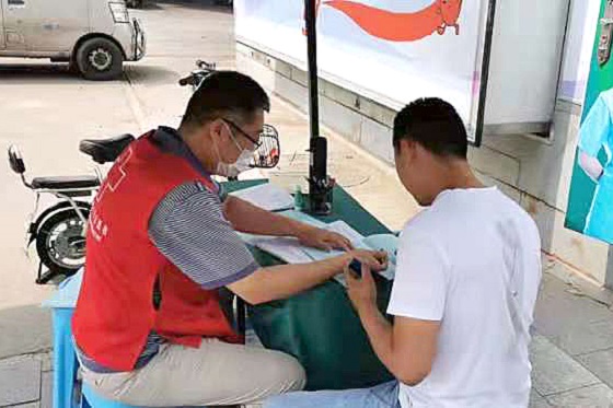 还有一次与中心党委书记戚海同志一起去新乐参加志愿服务,采血车刚停稳,戚海同志就开始忙个不停,摆桌子、支帐篷、招呼过往行人,从开始到结束整整一天都在车下服务。我清楚地记得那天,时值盛夏,骄阳似火,柏油马路上阵阵热浪袭来,在献血车下招募,一动就是一身汗。车上的工作人员不忍,劝我们上车凉快一下,可是戚海同志却丝毫不在意脸上密密麻麻的汗珠,坚持在车下服务,就连中午饭也是在车下很简单的吃了一点。我也劝他中午去车上稍微休息一下,他却摆摆手,说:“我们的志愿服务同志,全天在车下进行招募工作,从不叫苦,我也不搞特殊。”下午的时候,城管人员不期而至,要求采血车挪动停靠位置。戚海同志又耐心与城管人员进行沟通,在他的不懈努力下,我们最终顺利完成了一天的采血工作。让人欣慰的是,虽然中间有些小波折,但那天的采血量超过之前好多。作为中心的主要负责人,工作纷繁复杂,加班加点是常态,就算刚值完夜班,他也会如期按照中心要求的次数和时间,高质量地去完成志愿服务工作。表率如斯,吾辈又怎能懈怠。在戚海同志的带动下,五支部的志愿服务工作,历年来是中心各支部做得最扎实的,也受到了献血者和职工群众的交口称赞。