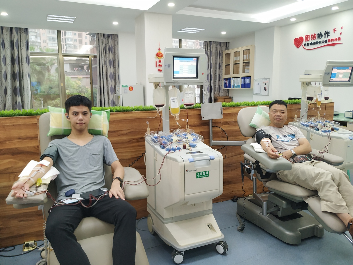 近日,龙岩市中心血站的老朋友——章晓明先生来到血站二楼采血大厅,以参加人生第200次无偿献血的方式,捐献了1.5治疗量单采血小板,庆祝他的第24个“献血生日”。一同前来的儿子章珩,也首次在龙岩血站捐献了同样量的单采血小板。
