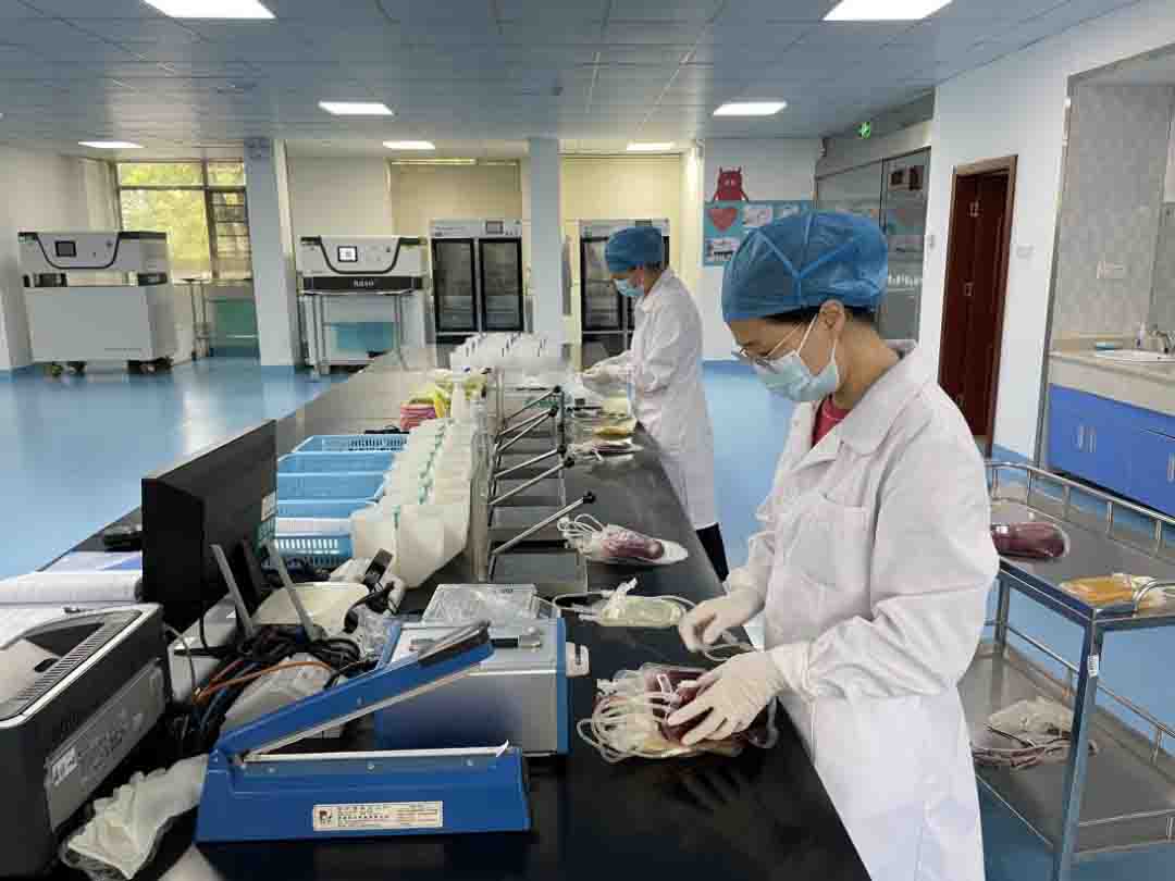 成分科认真制备血液成分