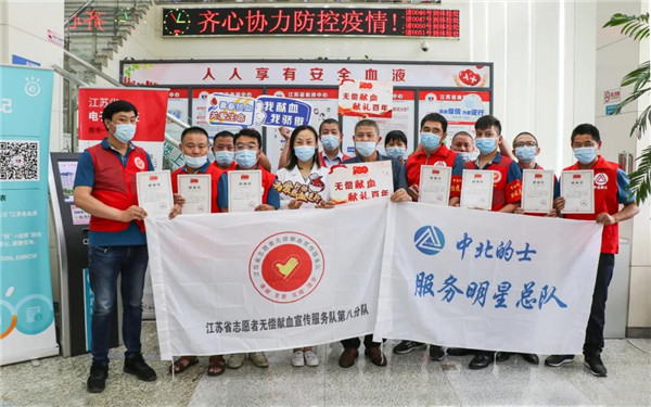 中北的士公司服务明星总队作为骨干力量成立的江苏省志愿者无偿献血宣传服务队第八分队,自成立以来,多次参加无偿献血宣传活动, “5·8世界红十字日”、 “6·14世界献血者日”等活动现场都有他们的身影,他们用自身行动诠释着“人道、博爱、奉献”的志愿者精神,让更多的人了解无偿献血拯救生命的意义。