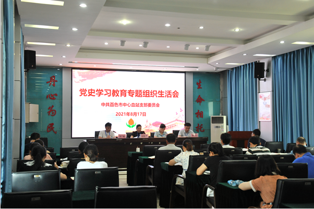 8月17日上午,百色市中心血站党支部召开了党史学习教育专题组织生活会,全体党员、预备党员参加了会议。会议由支部副书记黄翔同志主持。