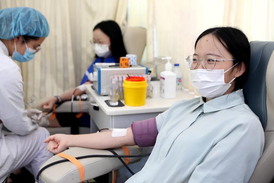 双胞胎姐妹郭小飞和郭小天,是森马服饰的员工。8月19日,两人一起登上停靠在闵行区永德路上的“帮帮蜂”爱心车无偿献血。24岁的双胞胎姐妹一起求学、一起求职,一起献血还是第一次,两人表示,献血没有想象中的疼,很快就献完了。采血工作人员很热情。以后还会再次献血。