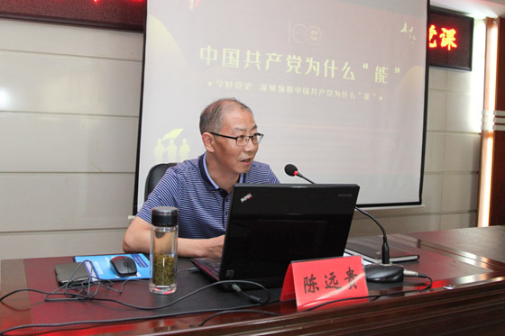 为进一步强化党史学习教育,增强党员初心意识、使命意识,提高党性修养,8月19日下午,蚌埠市中心血站党支部开展党史学习教育专题党课,站党支部纪检委员、副站长陈远贵以《中国共产党为什么能》为题,为全站党员授课。