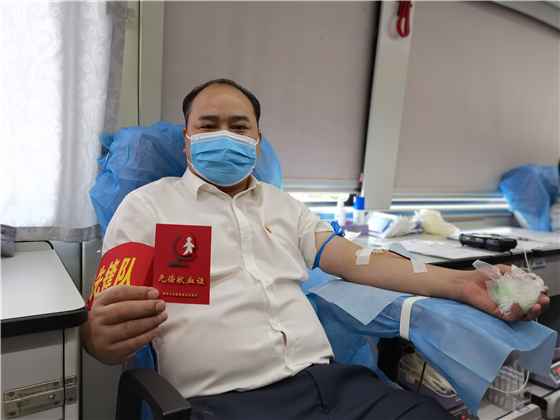 (鑫能实业有限公司执行董事龙厚权带头献血)