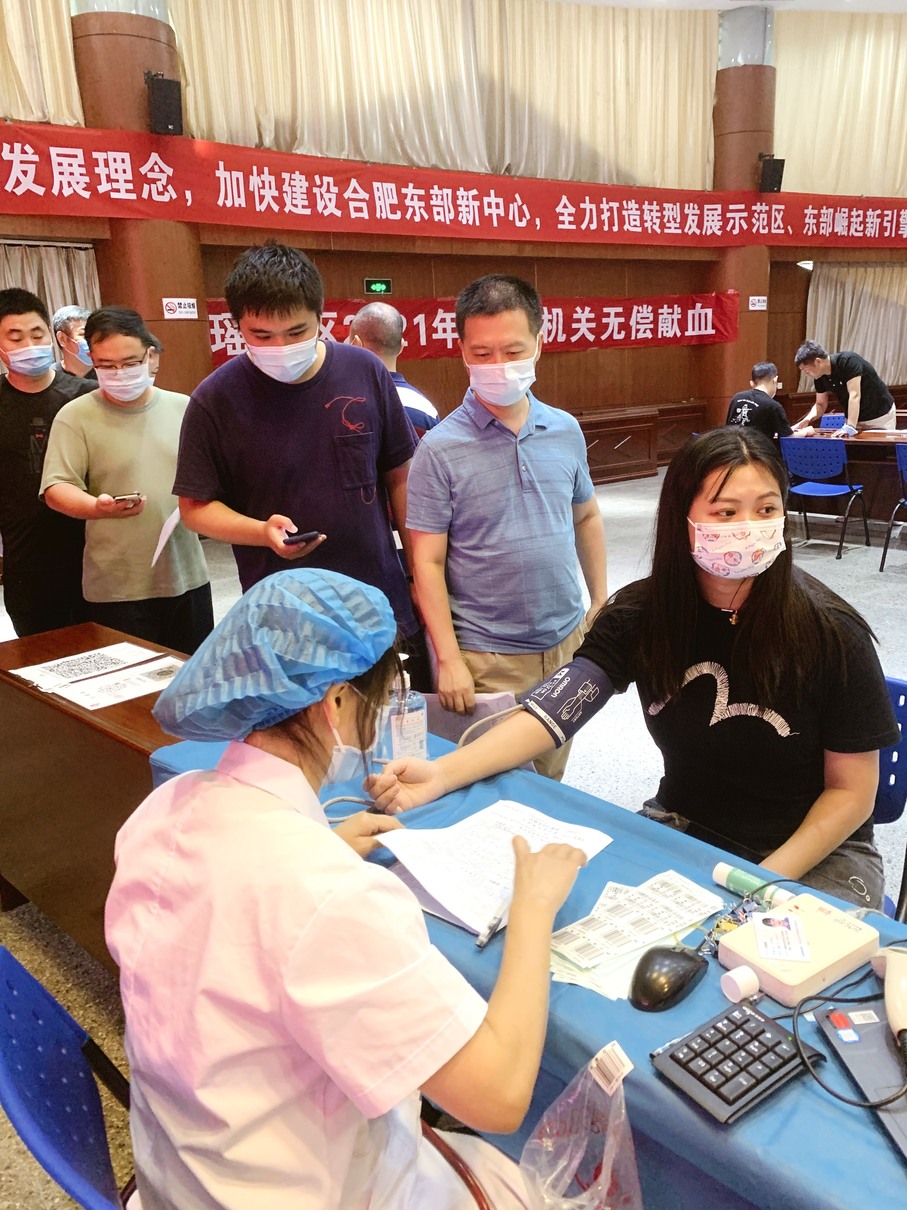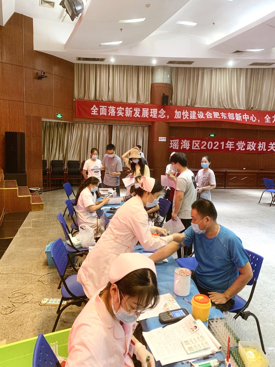 为更好地抗击新冠肺炎疫情,保障医疗临床用血需求,弘扬人道主义精神,2021年8月20日,瑶海区卫健委组织辖区党政机关人员开展无偿献血活动。