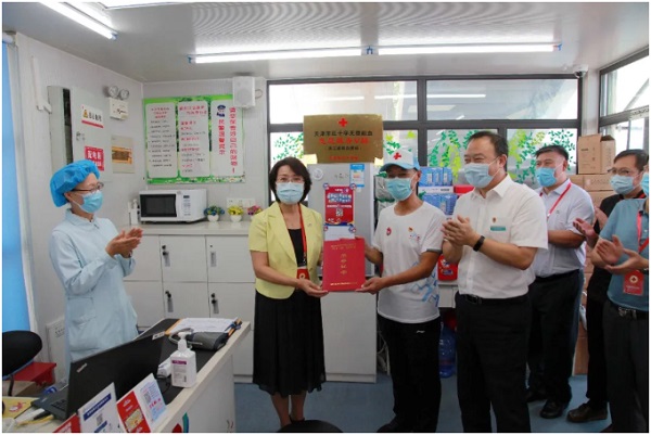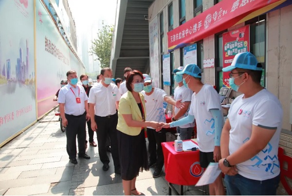 日前,天津市红十字会党组书记、常务副会长吴庆云,党组成员、秘书长毛全华;天津市血液中心党委书记、主任张荣江;天津市红十字会事务中心负责同志及相关工作人员,来到滨江道献血屋及东北角献血屋,对无偿献血服务志愿者和采血医护人员进行了慰问。