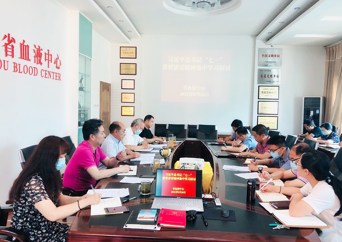 8月26日,贵州省血液中心举行党委中心组集中学习研讨暨8月政治理论学习会,持续深入学习习近平总书记在庆祝中国共产党成立100周年大会上的重要讲话精神,围绕习近平总书记“七一”重要讲话精神进行专题学习和交流研讨。中心党委书记朱思刚主持会议并讲话。