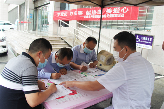 8月26日上午,安康市中心血站献血车停在了市政务服务中心门前,尽管雨很大,但抵挡不住市行政审批服务局职工们的献血热情,大家都围坐在遮雨棚下,认真有序地填表体检。