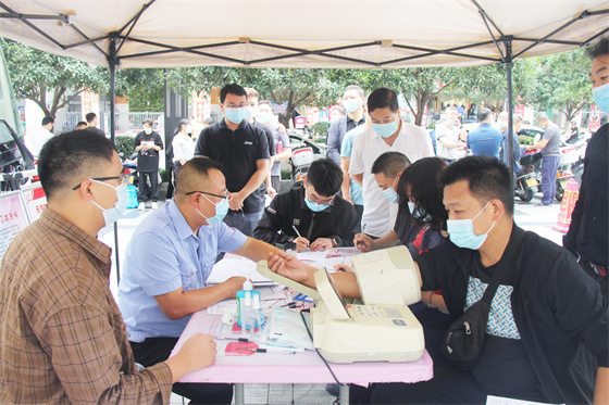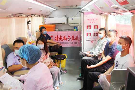 上午9点,大家陆续来到献血车前,在市中心血站工作人员的引导下,全程佩戴口罩,排队有序地进行扫码、填表、体检,认真遵守疫情防控期间的献血规定。