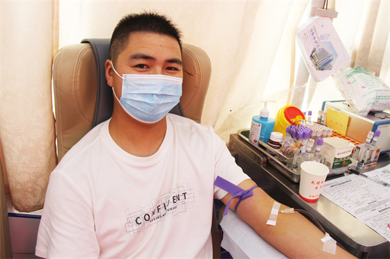 第一次献血的陈虎显得有些紧张,眉头稍皱的他坐上献血椅后默默伸出手臂,等采血针头扎进去的那刻才见他松了口气,陈虎有些不好意思地说:“第一次献血,确实有点紧张,但这会儿坐定了就感觉放松了,作为一名入党积极分子我也想尽一点义务,能参加无偿献血,挽救更多人的生命,这让我觉得很有意义。”