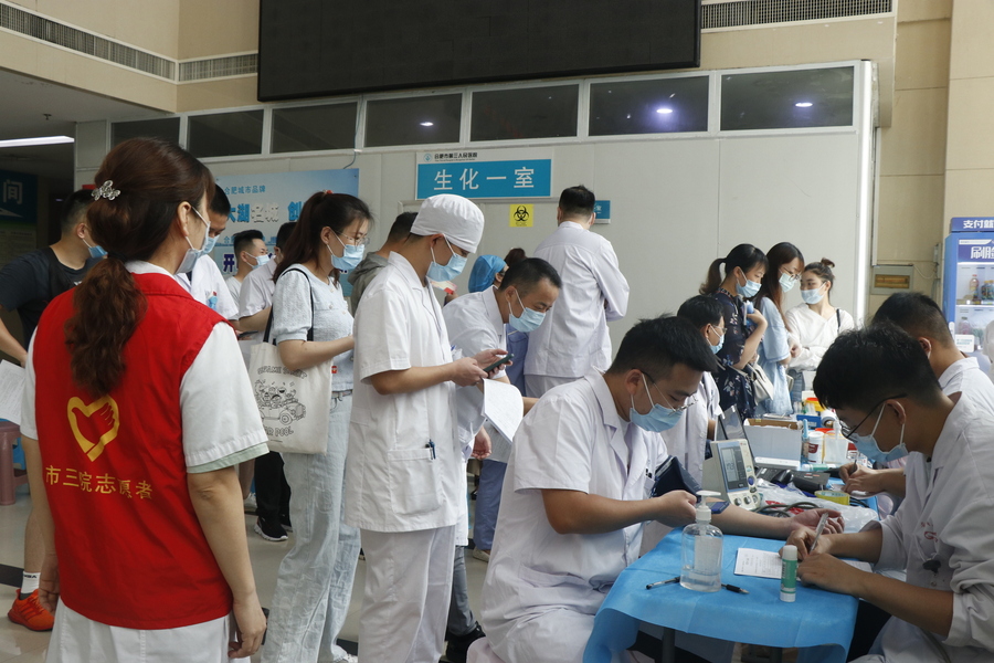 2021年8月25日,合肥市第三人民医院组织开展无偿献血活动。