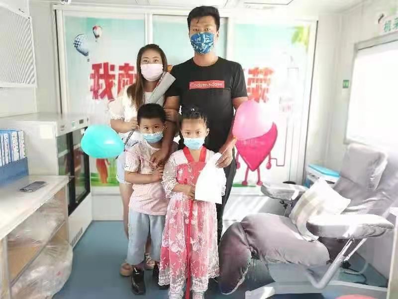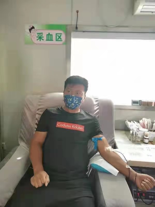 刘海山告诉我:“我们都献了好多次血了,每次都是我们俩一起来。本来今年6月14日要来的,可是我跟她都在上班,还真没时间来,今天我们都休息,就想的一定要来献个血,再加上今年是建党100周年,作为党员的我们,除了要一心向党,不忘初心,牢记使命,还要为我们群众办实事好事,献血就是我们可以做的力所能及的事情”。