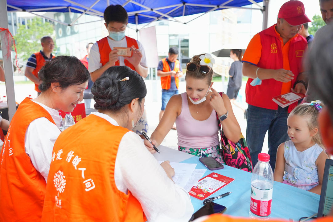 除了杭州市民,还有不少国际友人参加到了这次无偿献血中。来自美国的留学生Kamyla约了朋友逛银泰,志愿者上前感召时发现她基本不会中文,正在犯愁之时,志愿者队伍中一位浙大博士挺身而出,全程翻译,陪同献血。献血车上不同岗位的工作人员也都能用简单的英语和她进行交流,她赞叹杭州真是个国际化的城市。最后Kamyla成功捐献了300毫升全血。