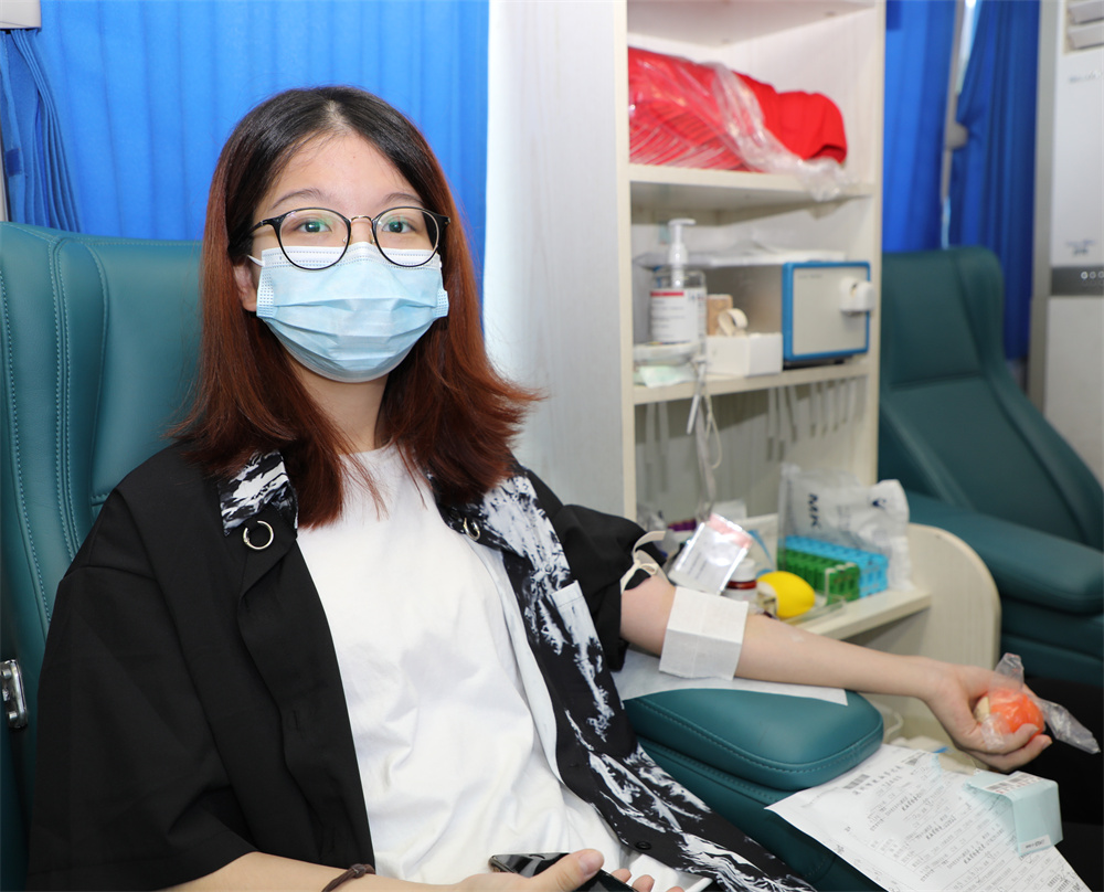 还在实习期的陈禧榕小妹子,见到医生护士姐姐们都热情参与,忍不住也来体验这捐血救人的快乐。