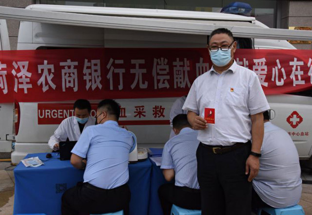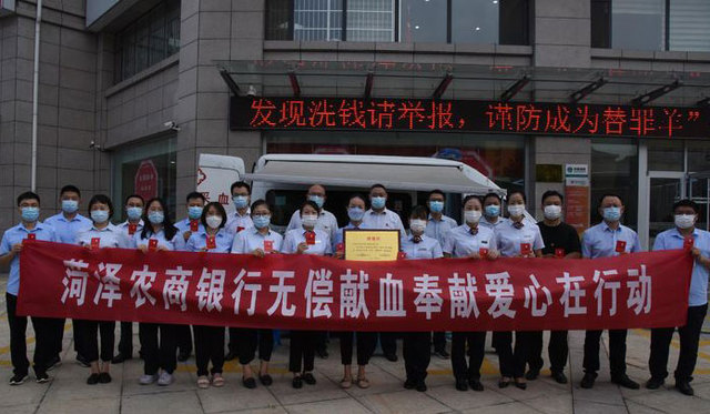8月26日,菏泽农商银行积极践行社会责任,组织员工开展“菏泽农商银行无偿献血奉献爱心在行动”活动,并邀请菏泽市中心血站献血车来到菏泽农商行现场采血,用热血和爱心传递人间真情。