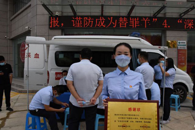献血现场,大家有序排队,等待献血。工作人员精心为每名献血者测血压、采血样、验血型,录入个人信息,完成一系列献血前步骤,现场秩序井然。献血队伍中有连续多年献血的爱心达人,也有刚刚递交入党申请的青年员工,还有许多第一次参加献血活动的年轻小伙、更有巾帼不让须眉的女同志。在符合献血要求及疫情防控的前提下,志愿者们勇敢地撸起袖子献出自己的新鲜血液,一股股鲜红的血液顺着输液管缓缓流进血袋,点点爱心涓涓汇聚。正是菏泽农商银行的红马甲党员先锋队服务精神把大家聚在一起捐献热血,奉献爱心。先后有28名员工捐献了热血,献血总量11200毫升。一颗颗诚挚的爱心,一袋袋鲜红的热血,彰显了菏泽农商银行员工献血救人、无私奉献的崇高精神。